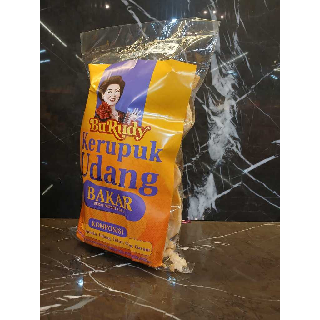 KERUPUK UDANG BAKAR BU RUDY Terbuat dari udang berkualitas tinggi dengan proses penggorengan menggunakan pasir, sehingga menghasilkan cita rasa yang berbeda dengan kerupuk lain. Cocok sebagai teman nyemilmu!!!! berat 135gr